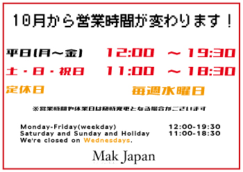 2025年10月より営業時間が変わりました!